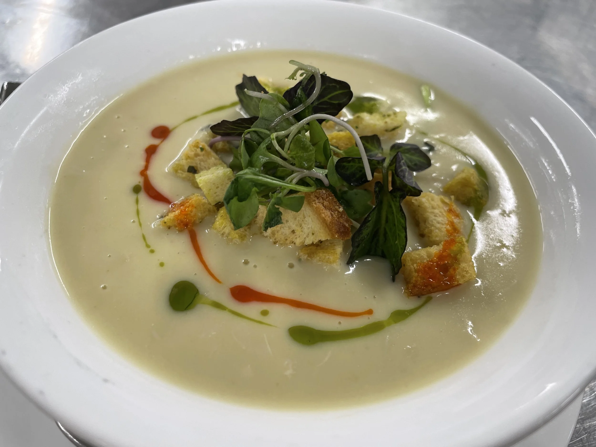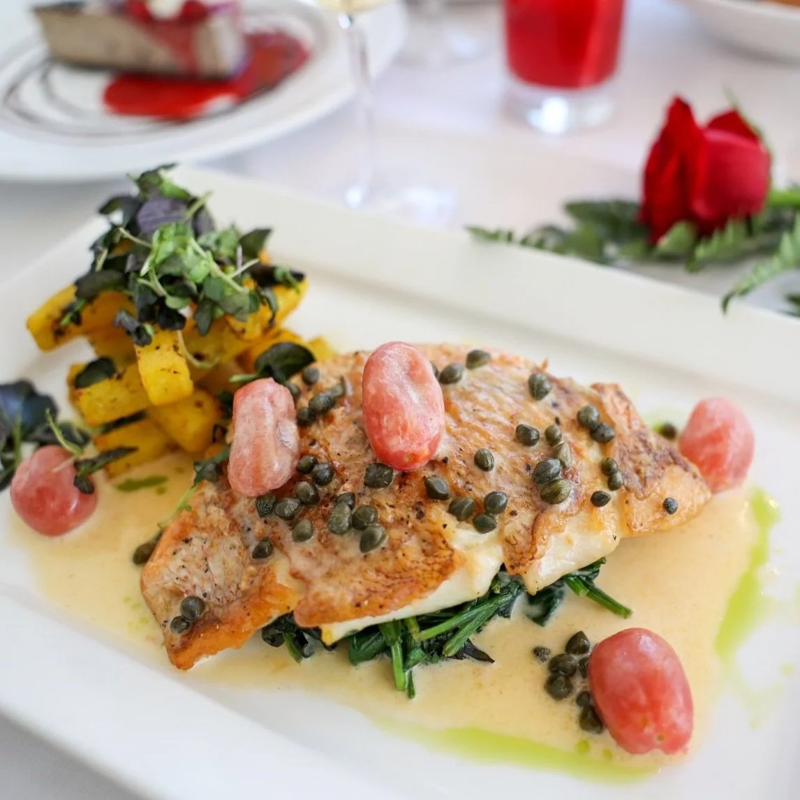MOTHER'S DAY SPECIALS (May 5 - June 7) $10 cup / $13 bowl Lobster Bisque puff pastry croutons, micro greens $10 cup / $13 bowl $19 Beet & Berry Salad organic field greens, candied walnuts, goat cheese, citrus agave vinaigrette $19 $24 Pepper-Crusted Beef Carpaccio horseradish cream sauce, micro salad $24 $46 Pan-Roasted Florida Red Snapper creamy parsnip pureé, roasted grape tomatoes & asparagus, champagne beurre blanc $46 $49 Herb-Crusted Rack of Lamb au gratin potatoes, sauteéd baby bok choy & baby carrots, natural sauce $49 $14 Amaretto Cremé Brulee Cheesecake fresh berries & anglaise sauce $14 LOBSTER BISQUE AMARETTO CREMÉ BRULEE CHEESECAKE PEPPER-CRUSTED BEEF CARPACCIO PAN-ROASTED FLORIDA RED SNAPPER